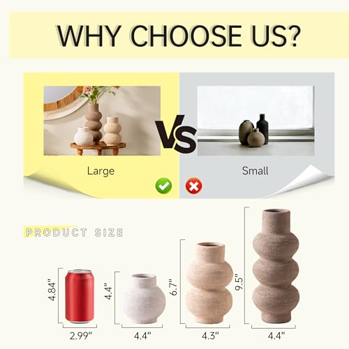 【Perfect Size】Large: 4.4″L × 9.5″H;Medium: 4.3″L × 6.7″H;Small: 4.4″L × 4.4″H. Featuring intricate detailing and a rich texture, this vase complements a variety of home styles—farmhouse, rustic, country, even modern. It effortlessly blends in with existing furniture and accessories, adding a timeless charm and harmonious look to your space.