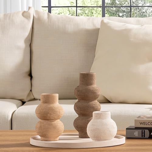 Ceramic Vase Home Table Decor – Flower Vase Set of 3 Living Room Kitchen Decorations Farmhouse Modern Rustic Vases Decorative Centerpiece for Shelf Bedroom Office Bathroom Dining Coffee Desk