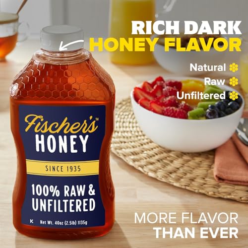 Fischer’s 100% Pure, Raw & Unfiltered Honey, 40 oz – All-Natural Sweetener – Rich Flavor Profile, Packed with Nutrients