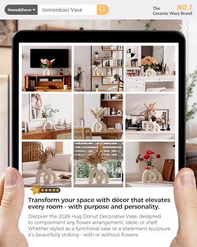 Hug Donut Decorative Vase Set – Modern Nordic Boho Style Vases Home Decor, Matte Ceramic Decorations for Living Room Shelf, Bookshelf Mantle Entryway Table or Console Décor (Cream White)