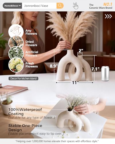 Use Scene – Minimalist and modern design Conjoined Boho Style Decorations vases for living room large shelf, bookcase, Entrance table, sofa table, console table, fireplace or mantle. Of course, Your use it to display dried flowers, reeds, natural pampas grass, rabbit tails, or any kind of fresh flowers.