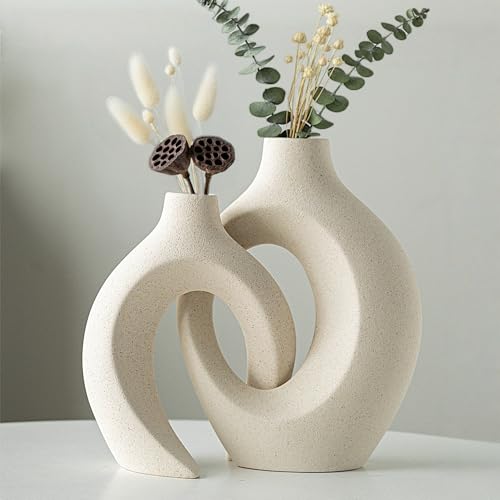 Levvohd Hollow Ceramic Vase Set of 2, Modern Nordic Minimalist Book Style Boho Aesthetic Vases for Home Decor Living Room Shelf Entryway Coffee Centerpiece Table Decorative (Cream White)