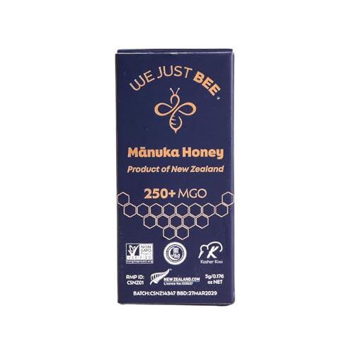 We Just Bee Manuka Snap Packs MGO 250+ offer a convenient way to enjoy the benefits of 100% pure Manuka honey from New Zealand. Each pack contains 12 single-serve packets, making it easy to take on the go. This raw honey is known for its potential to support immunity and provide a natural energy boost.