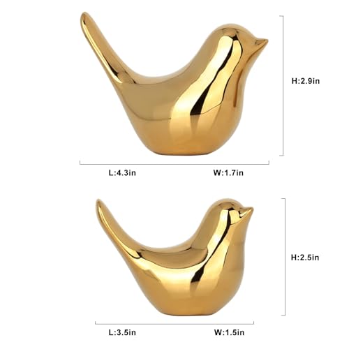 XMGZQ 2 Pcs Gold Decor Accents,Small Animal Statues,Modern Home Decorative, Birds Sculpture, Ornaments for Shelf, Bookshelf, Coffee Table,Knick Knacks Home Decor for Shelves(Gold Bird)